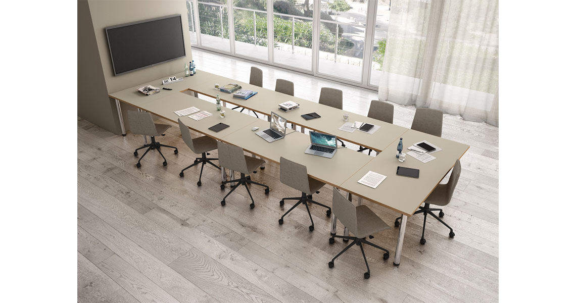 Un elemento que se aprecia por su fuerza y sencillez en las formas. Arno 3, disponible en seis composiciones, formas y longitudes diferentes, es la mesa adecuada para quienes buscan un producto fácil de usar, extremadamente sólido y sin concesiones.