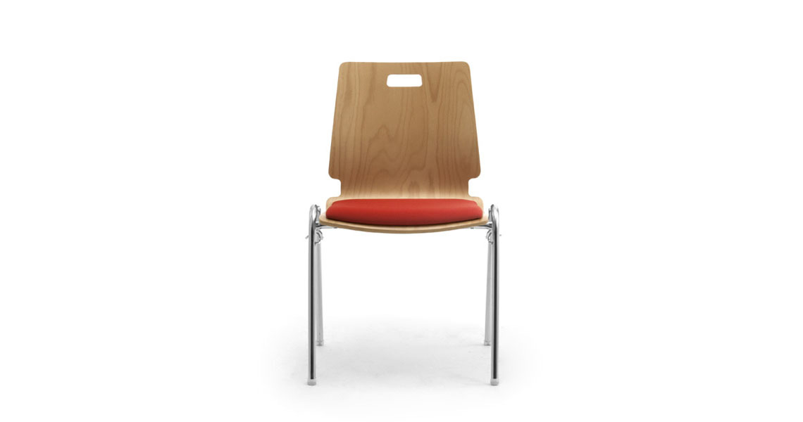 - Sillas apilables y enganchables con carcasa de madera de forma anatómica, por lo tanto, también adecuadas para largas conferencias