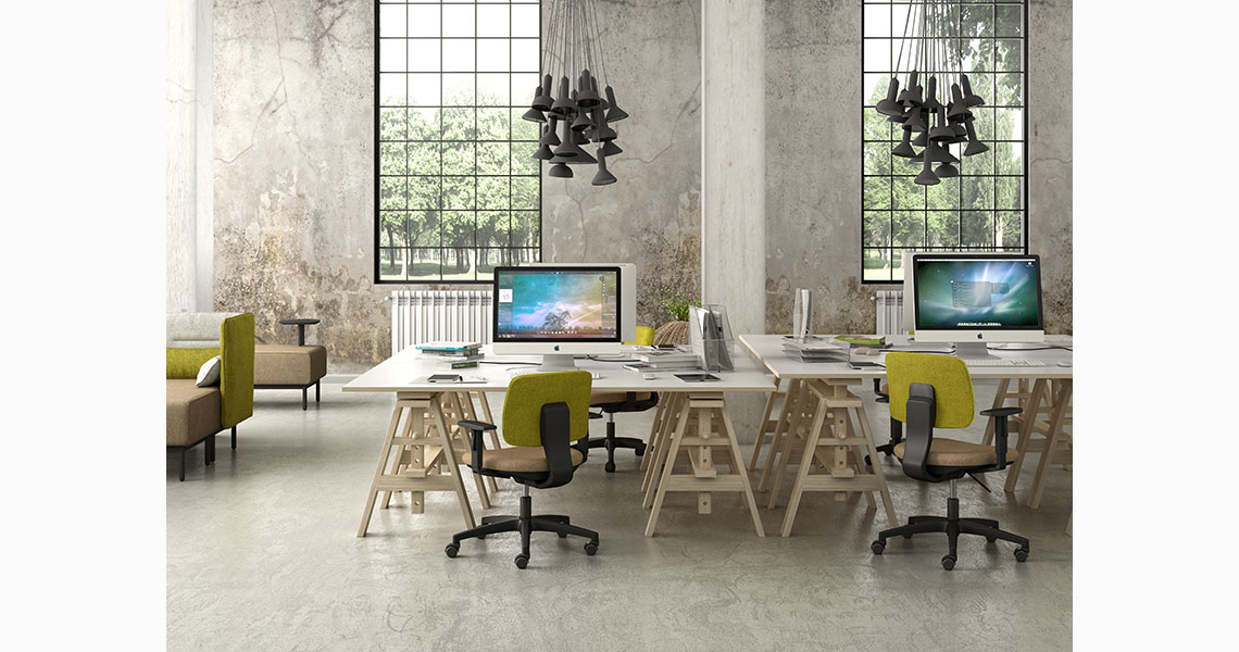 DAD está diseñado para entornos dinámicos e inteligentes que fomentan la creación y la comparación. Las áreas de coworking, las reuniones y los encuentros son los lugares donde DAD encuentra su entorno natural. Aquí se forman grupos de trabajo donde los participantes se concentran en crear un proyecto e intercambiar ideas, dejando que la silla giratoria DAD se encargue de la comodidad y ergonomía en los movimientos.