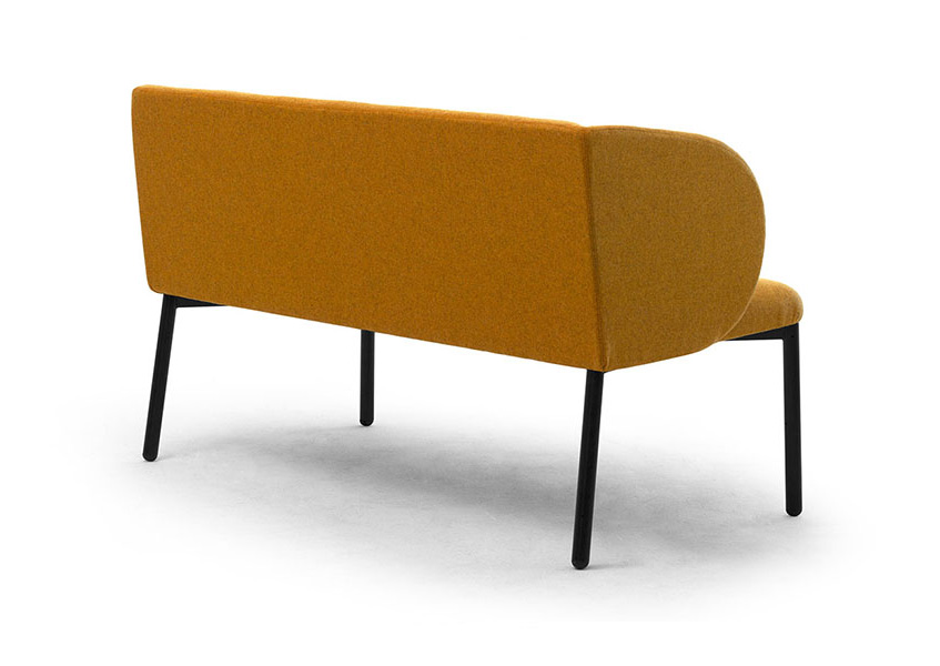 El sofá LIV se apoya en una robusta estructura de tubo de acero con una sección transversal de 30x10 mm y patas de 30 mm de diámetro y 2 mm de grosor, mientras que el asiento, el respaldo y los brazos son de madera aglomerada con soportes de acero; la tapicería puede ser de piel, polipiel ecológica lavable, tela antibacteriana o lana. LIV es un sofá totalmente ecológico adapto para el sector público.